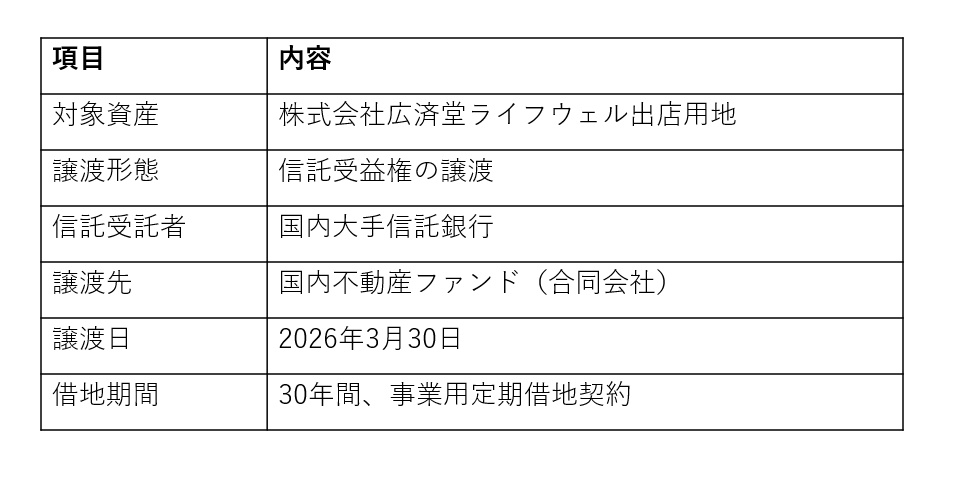 株式会社広済堂ホールディングス(東京都港区、代表取締役社長 常盤 誠、以下「当社」)は、グループ中期経営計画に掲げる葬儀事業の成長加速を目的として、SBIグループ(以下「SBI」)と連携した不動産流動化スキーム(底地ファンド)を実行いたしました。